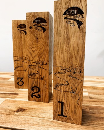 Že budete mít po "závodu" nohy těžké a tuhé jak dva špalky je celkem jasné, ale když sebou pohnete, tak si domů odnesete i tenhle kus dubu. Pro první tři muže a ženy jou připraveny dřevěné totemy s rozměry 75 x 75 x 300 mm a laserovým gravírováním po celém obvodu. Nic víc, nic míň!