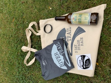 Nebo spíš vlastně taška, poctivá plátěná taška s potiskem, klasický náramek a samolepka, ale letos nově pivo Vidlák z Knížecího pivovaru Plasy. Tedy z toho pivovaru, kde se v pátek večer ladí na sobotní druhou etapu. Nechybí ani funkční finisherské tričko, ale pozor, to na tebe čeká až na konci třetí etapy!